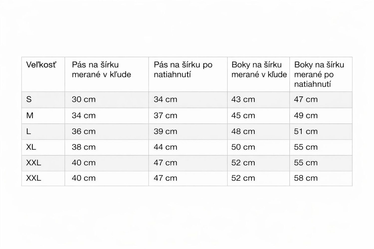 Odporúčame riadiť sa rozmermi v tabuľke. Rozmery nájdeš v tabuľke medzi produktovými fotkami na konci.
