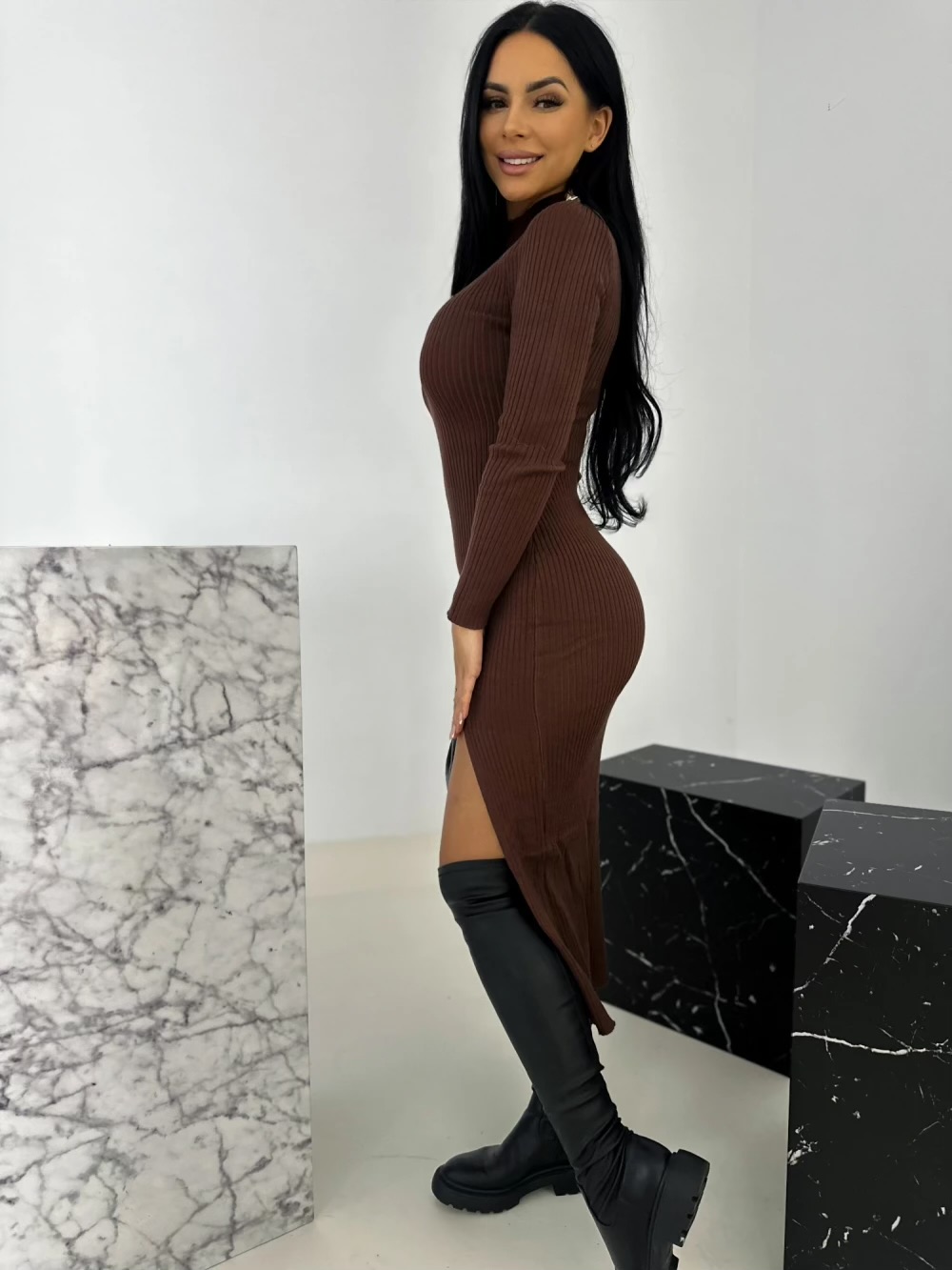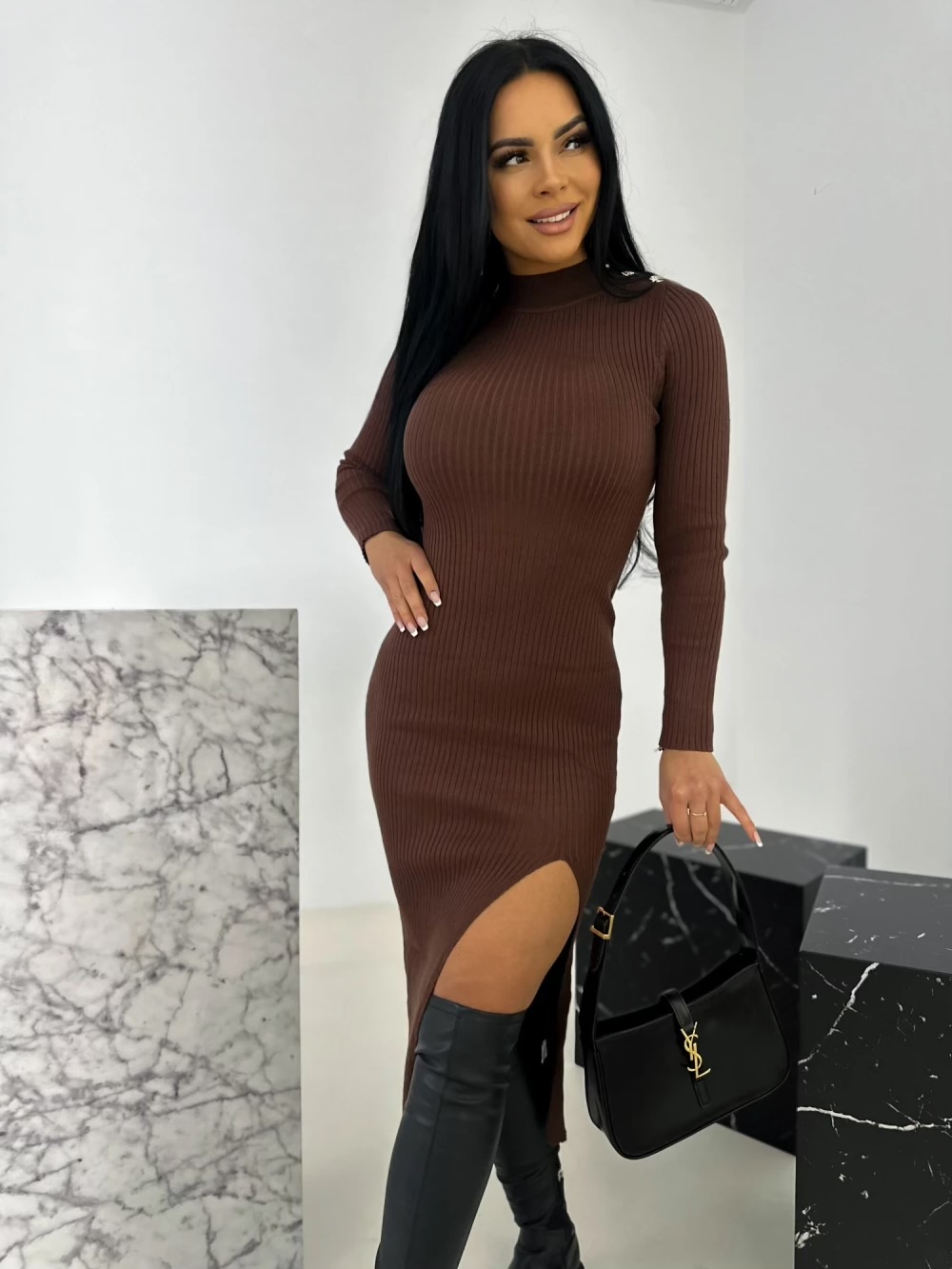 Rolákové šaty s rozparkom. Úžasný materiál, ktorý zahreje a krásne sadne na postave. Materiál je extra elastický, prémiová kvalita. Veľkosť univerzálna (XS, S, M, L)