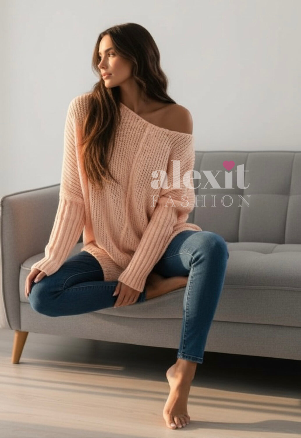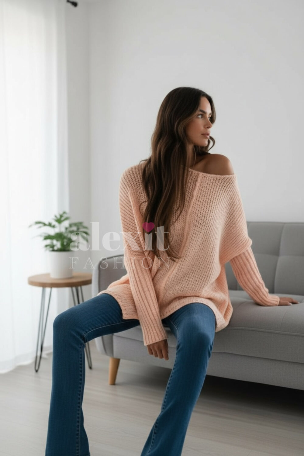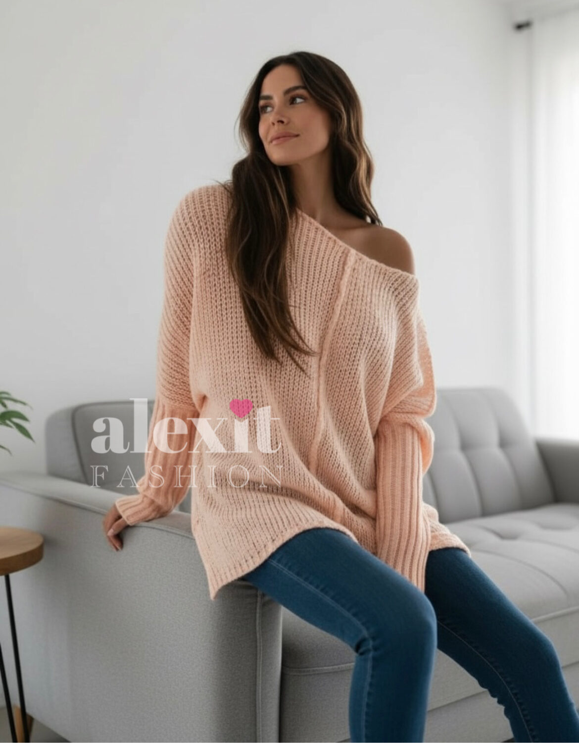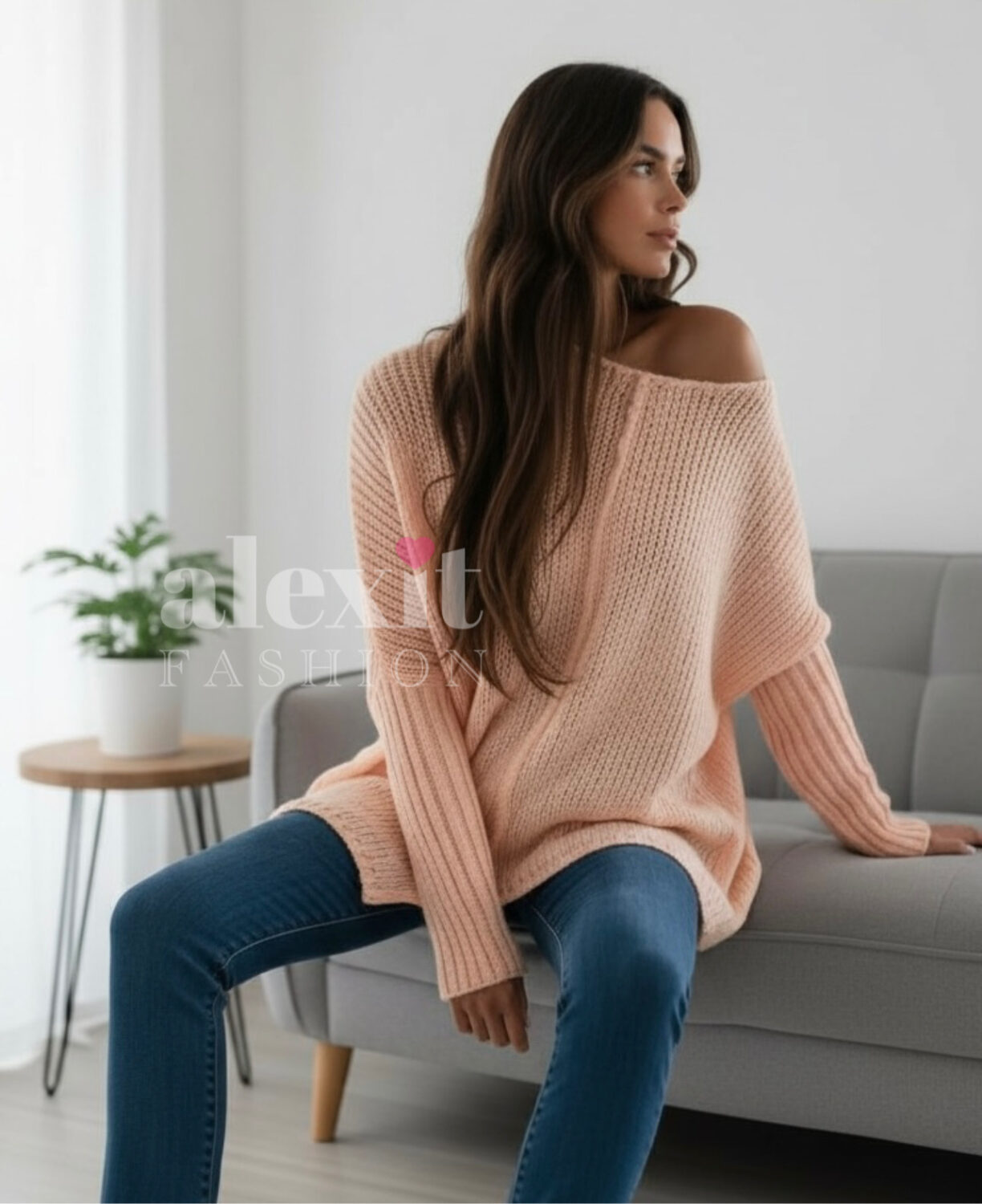 Mäkký sveter -oversize strihu, hrejivý štýlový kúsok. Neskutočne mäkký a kvalitný. Na konci rukávov zúžený strih.